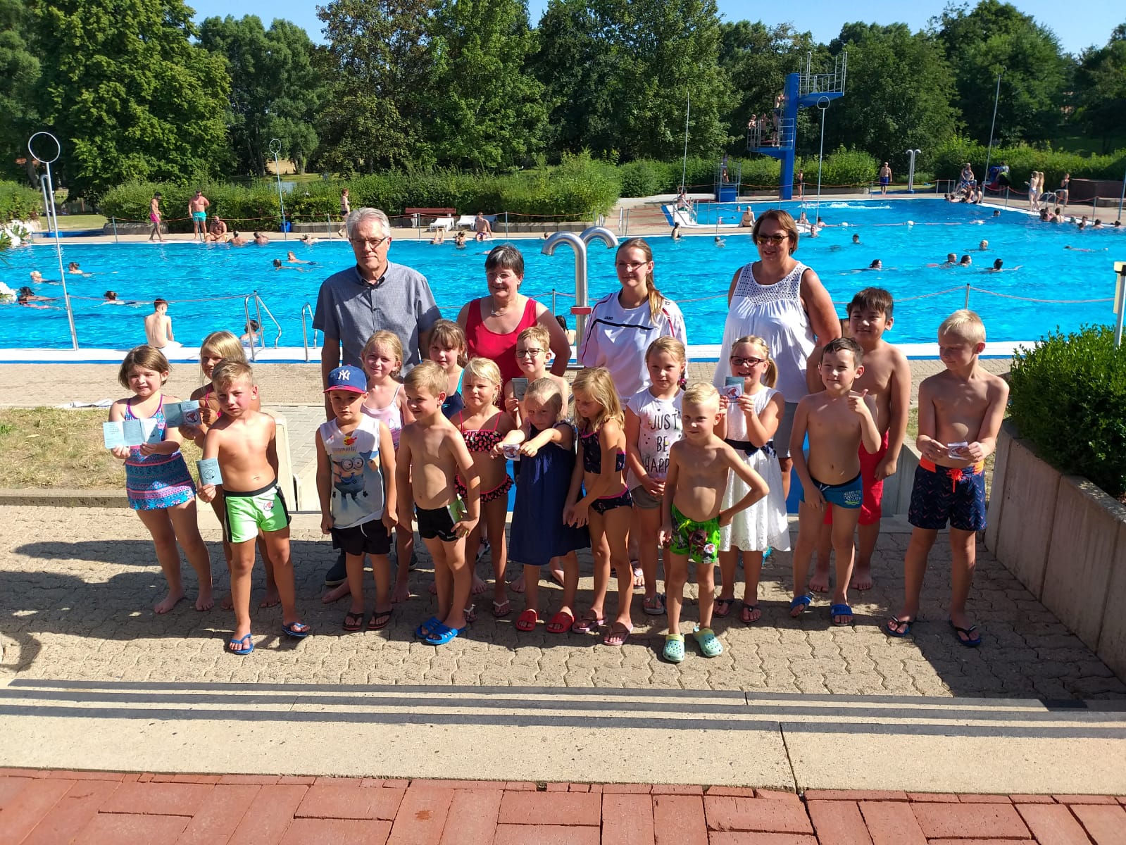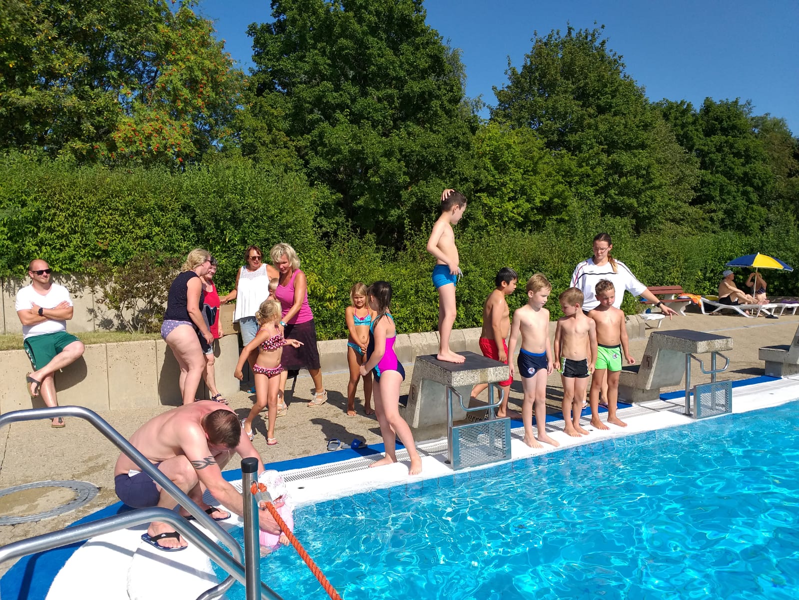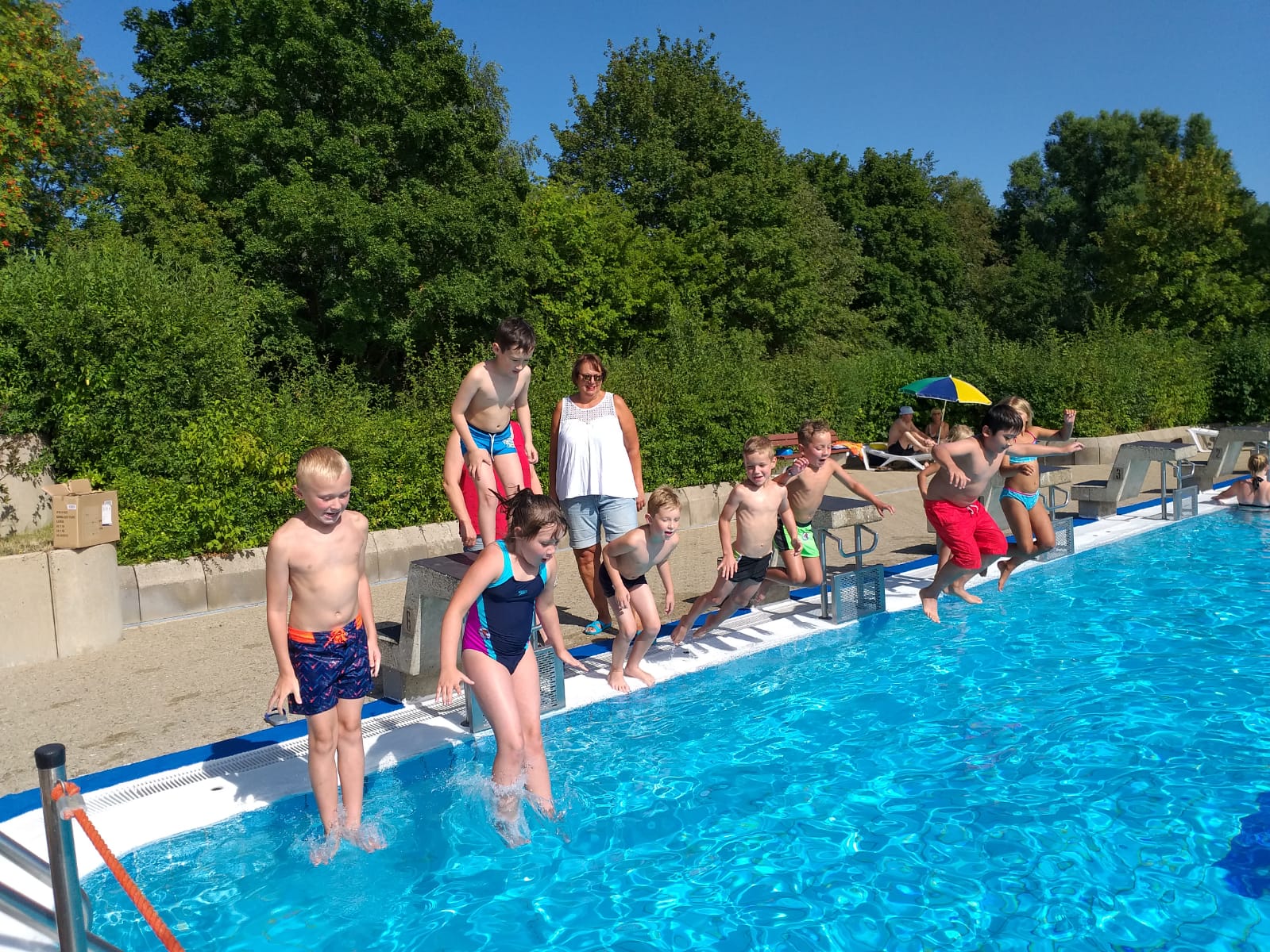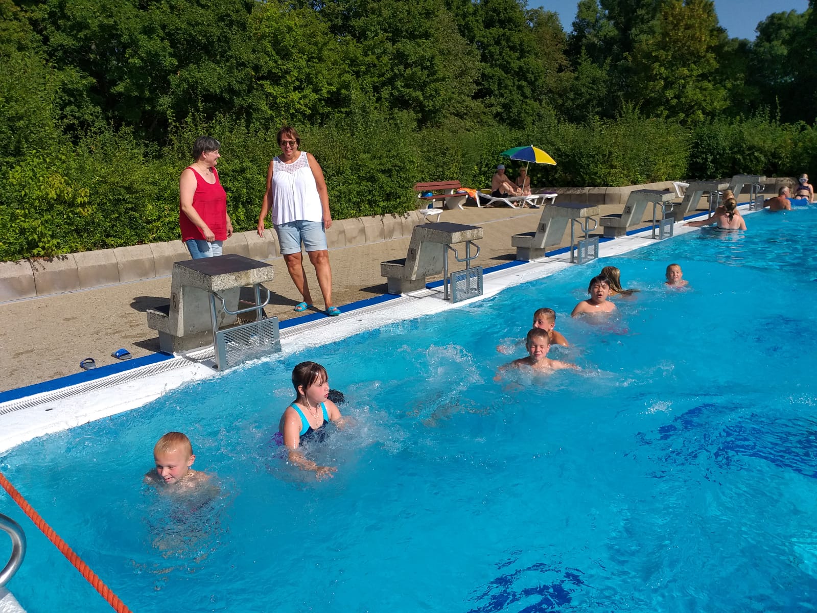 Während der Sommerferien wird für die Kinder, unter Betreuung vom DLRG, ein kostenfreies Freischwimmertraining